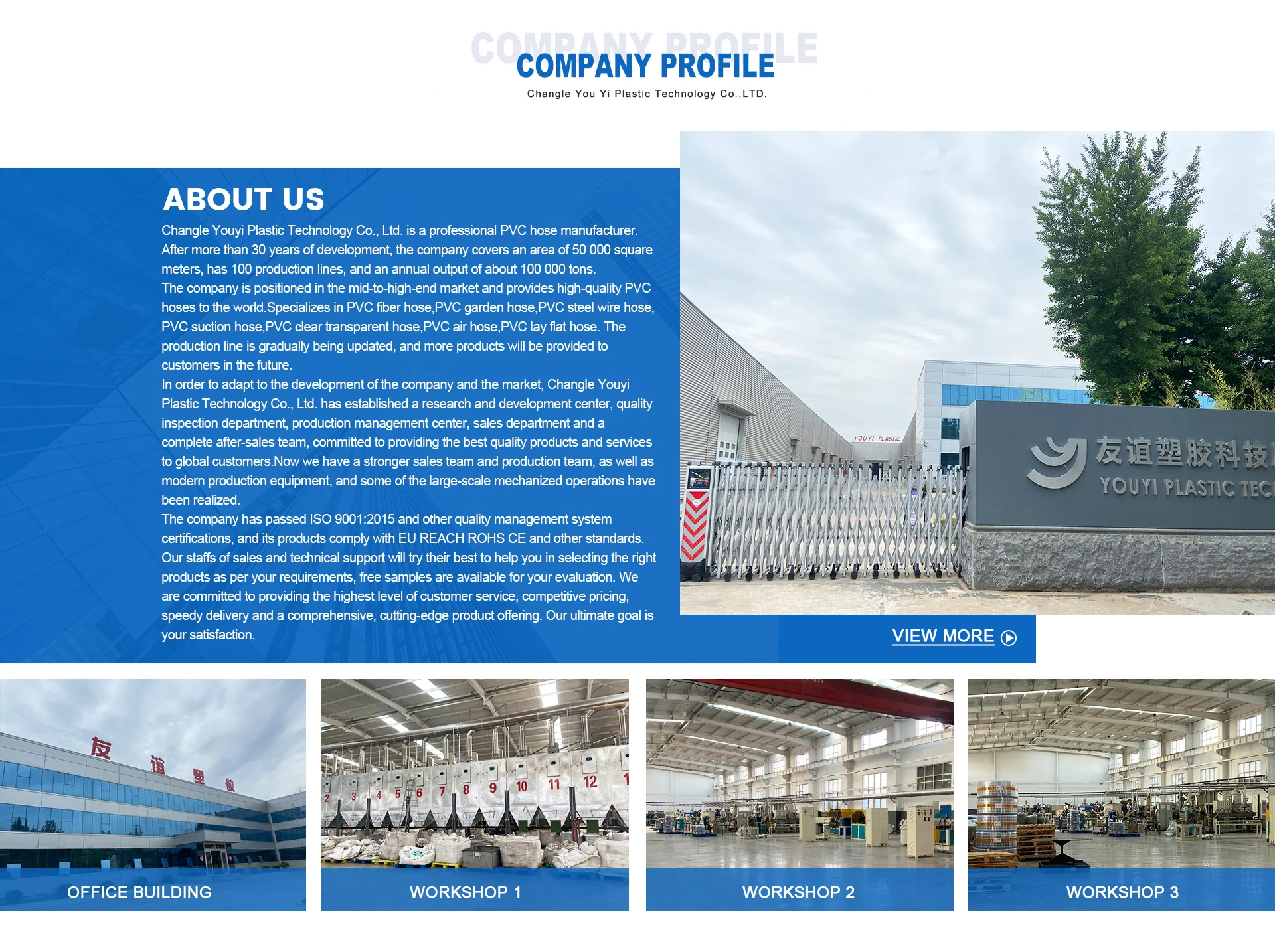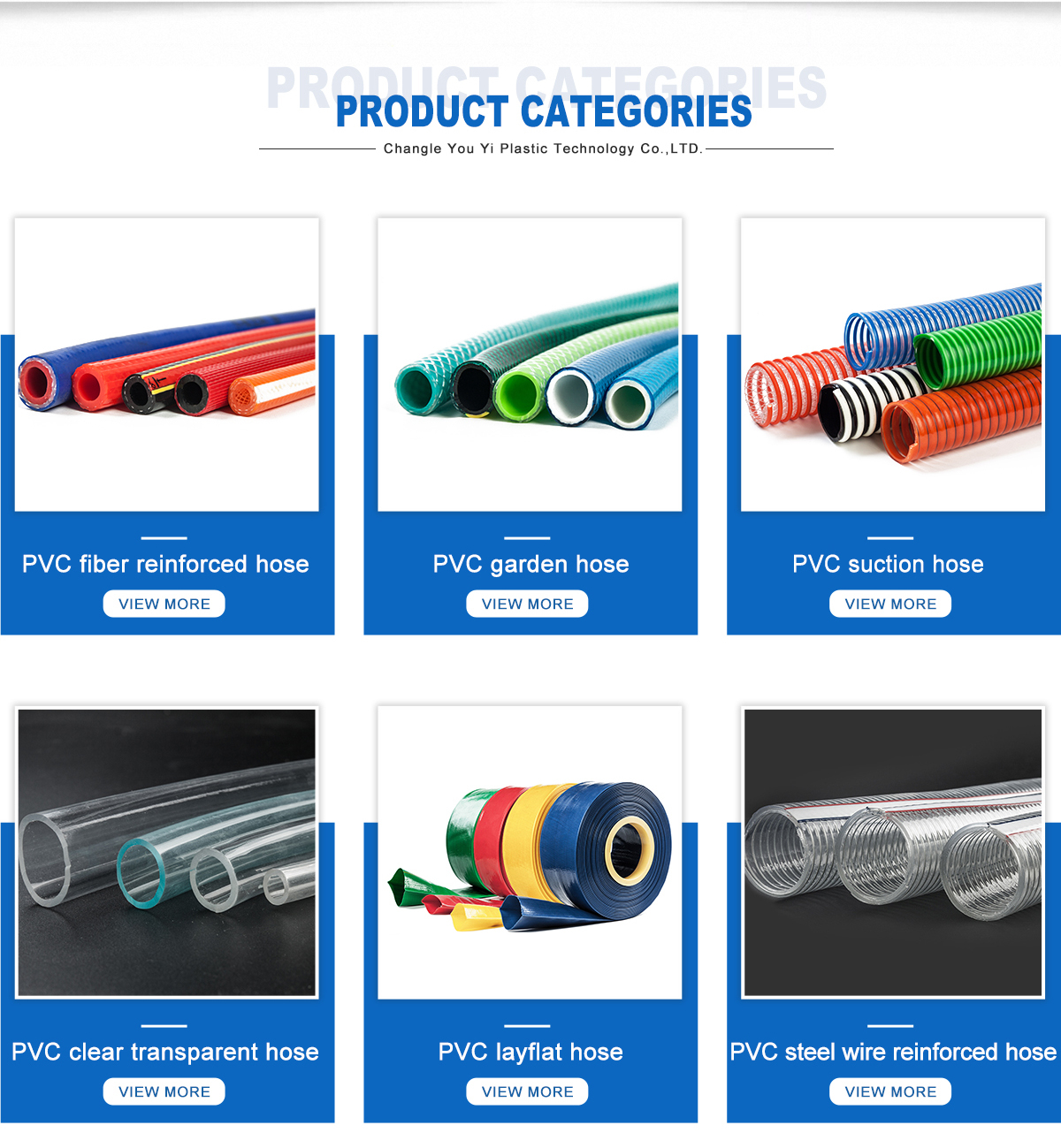 Productos principales:Manguera de PVC, manguera de jardín de PVC, manguera transparente de PVC, manguera de aire de PVC, manguera de alambre de acero de PVC